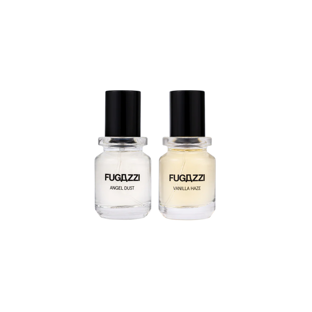 Two of Fugazzi's bestselling extraits, now pocket-sized. Wrapped in limited-edition holiday packaging, this duo is small enough to take anywhere, powerful enough to leave a trail. The perfect way to discover FUGAZZI or gift a taste of their most-loved scents.