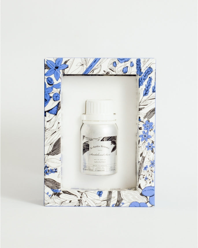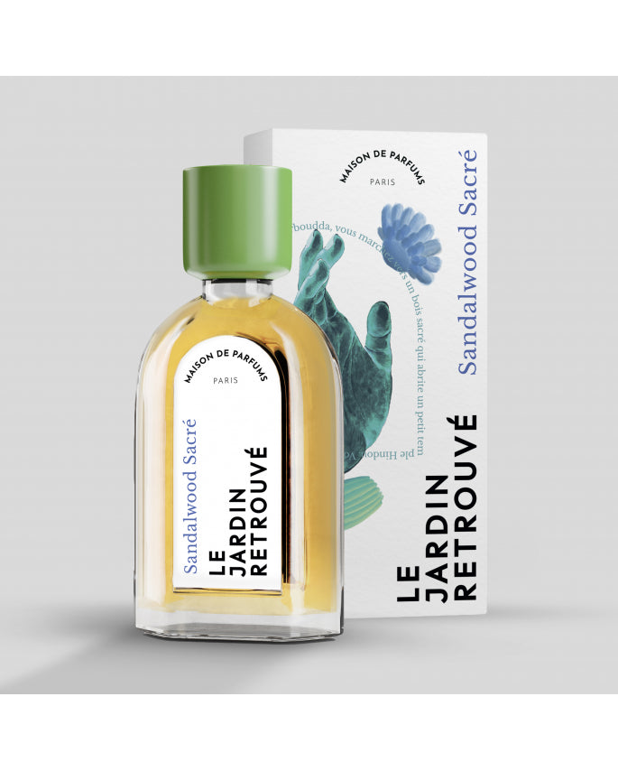 Sandalwood Sacré is an aerial and spiritual Eau de Parfum. Milky sandal and patchouli will transport you to the heart of Indian rituals where incense sticks burn precious woods. This fragrance will lead you to meet Yuri Gutsatz, founder of Jardin Retrouvé, who has worked extensively in India to discover the fragrant plants of this country rich in scents.