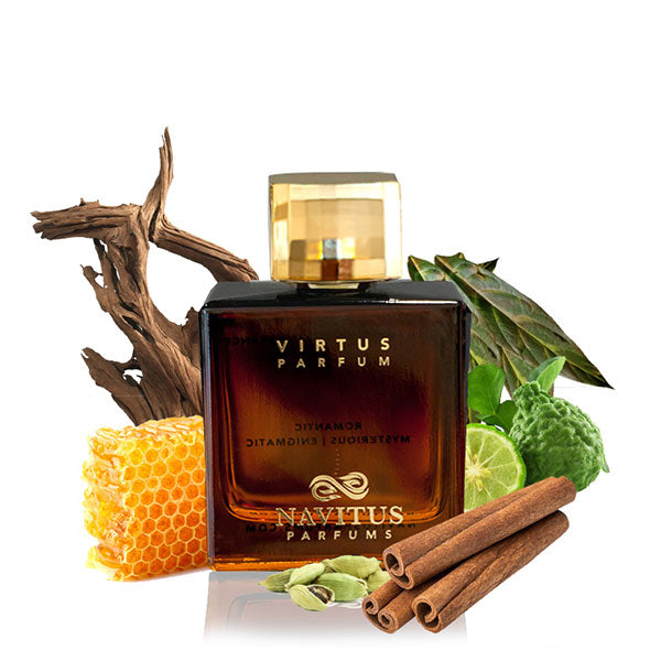 Carrying connotations of courage and valor, Virtus is a most powerful composition fit for the brave. As the infinity symbol represents strength, Virtus is an unapologetic and powerful blend containing notes of tobacco, beeswax absolute, cinnamon, and ambergris. What opens as a spicy concoction of saffron, nutmeg, and cardamom wonderfully evolves into an enigmatic heart of mango flesh, fig milk, cinnamon, and honey. The wearer of this omnipotent composition will undoubtedly be noticed with its complex and compelling aroma, which will eventually settle into an intoxicating base of vanilla, ambergris, labdanum absolute, caramel, and driftwood. Don’t just admire the occasion, conquer it!