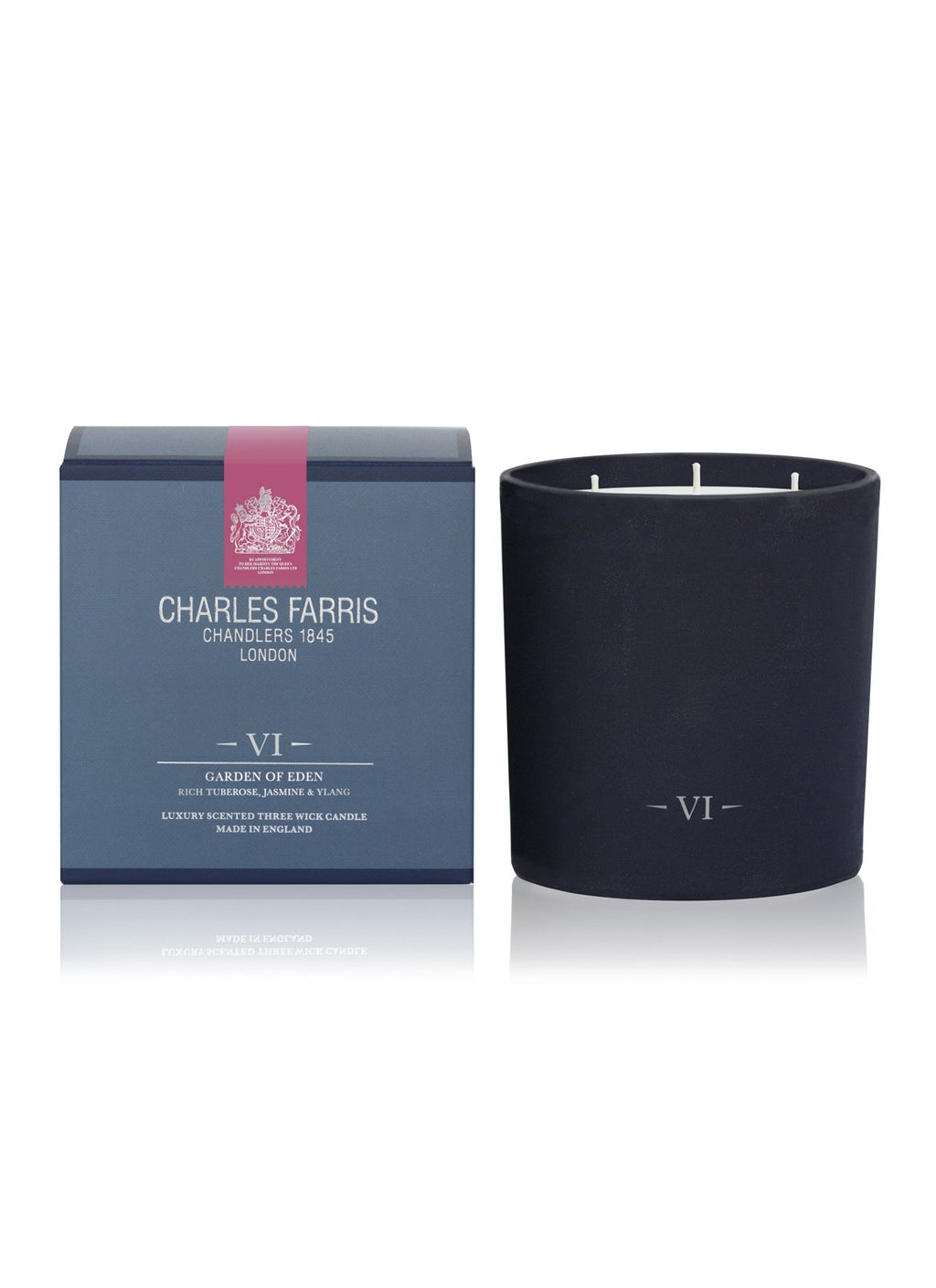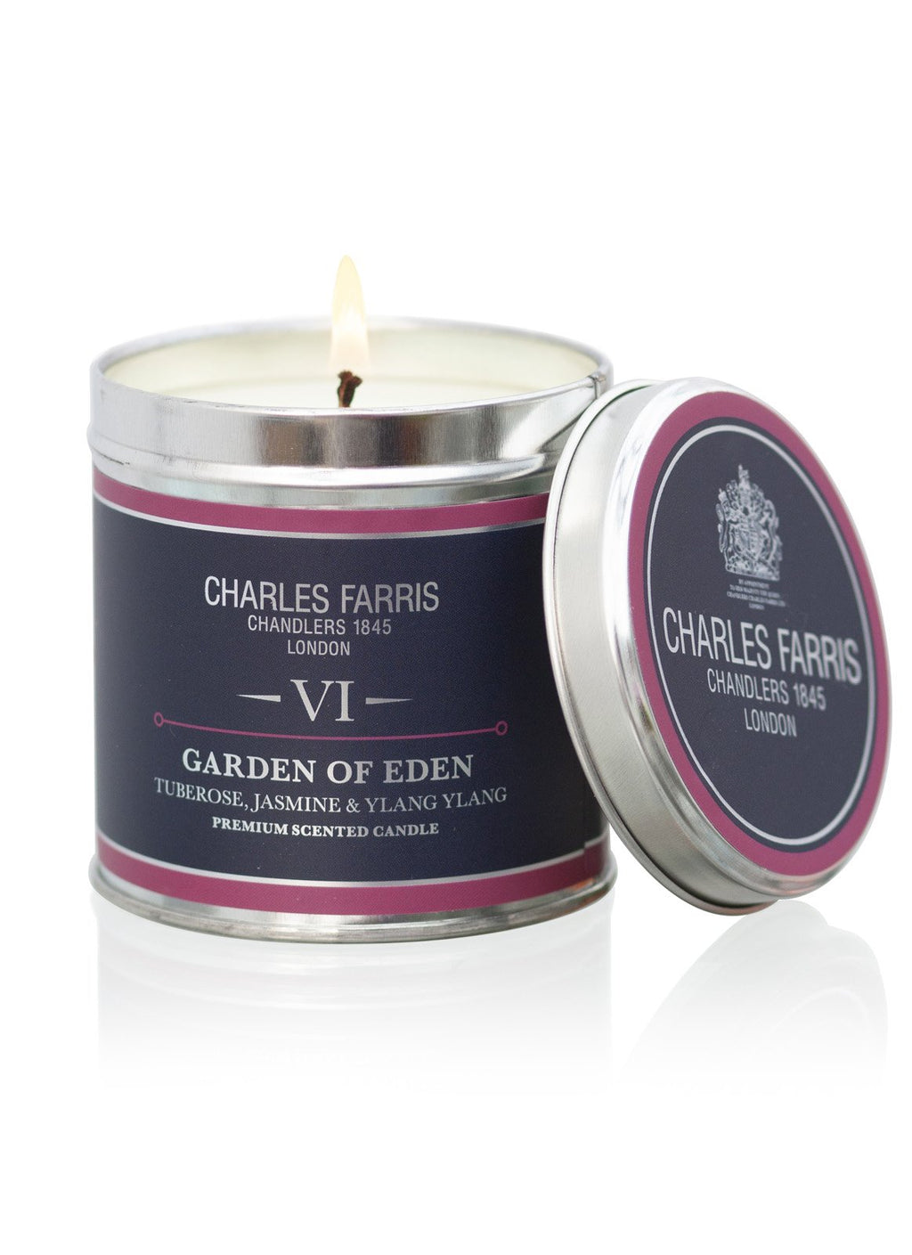 Charles Farris Garden of Eden Signature Scented Candle is composed of a blossoming garden scent of tuberose and lily of the valley, blended with fragrant jasmine and ylang. A deep, luxurious twist on the scents of the English cottage garden.